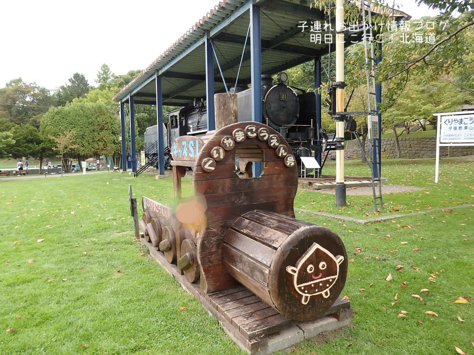 機関車の前には、乗って遊べる木でできた栗山公園号もありました。