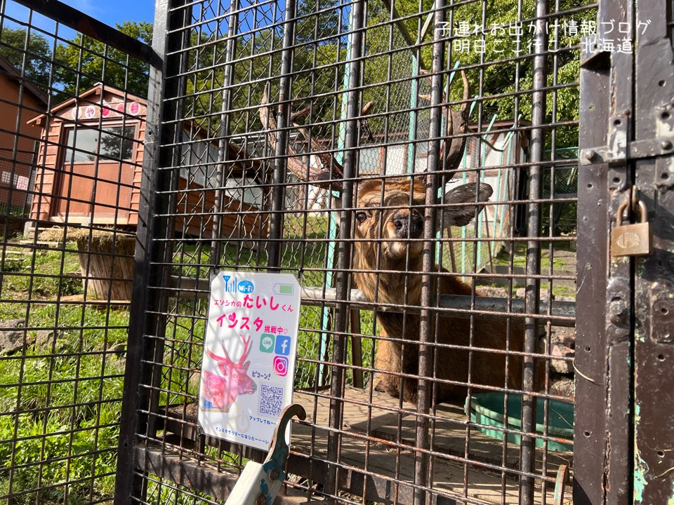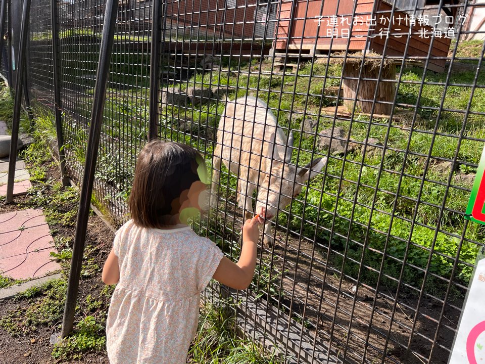ポニー小屋の前に子供たちが来ると、エゾシカとヤギも近寄ってきました。とっても人懐っこくて愛嬌たっぷりです。