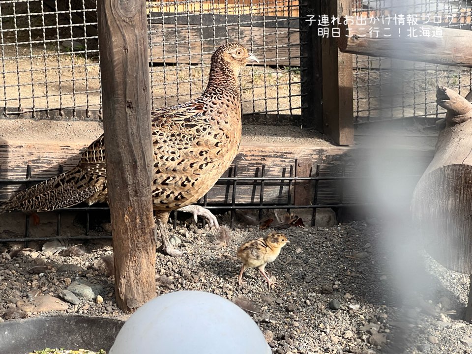 私が行ったときには、キジの小屋の中に、小さいヒナがチョロチョロしてました!