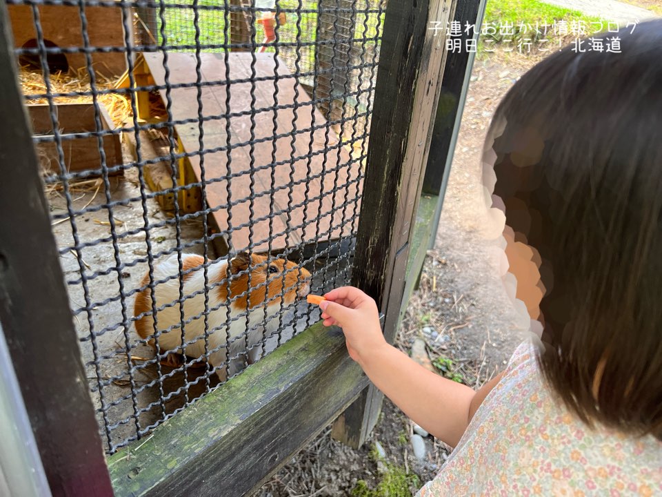 ウサギ、モルモット、ポニーなどにエサをあげて、間近で動物を観察出来ます。